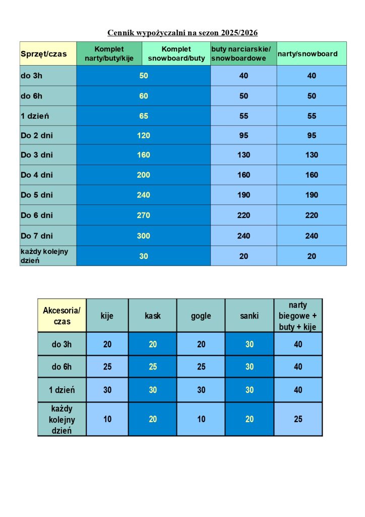 Uprawianie sportów zimowych to ogromna przyjemność. Jednak bardzo wiele zależy od prawidłowego doboru i przygotowania sprzętu. Nasza wypożyczalnia oferuje markowy sprzęt narciarski oraz snowboardowy, a fachowa obsługa pomoże Państwu w dobraniu go do indywidualnych potrzeb i umiejętności.